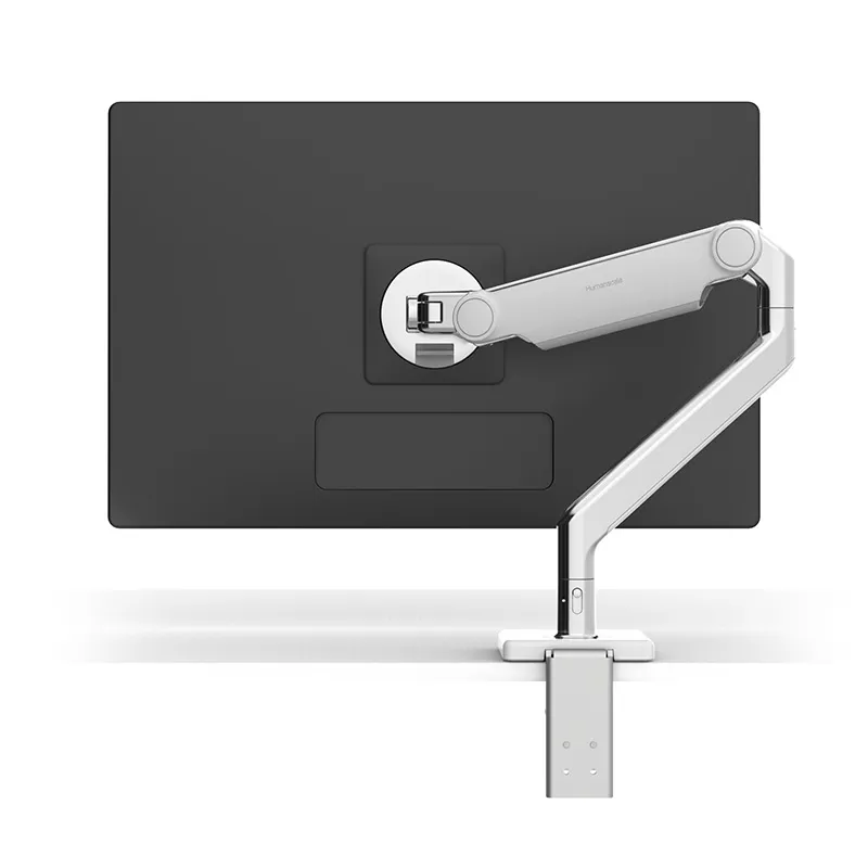 Flexible monitor arms that free up desk space — allowing seamless screen positioning.
