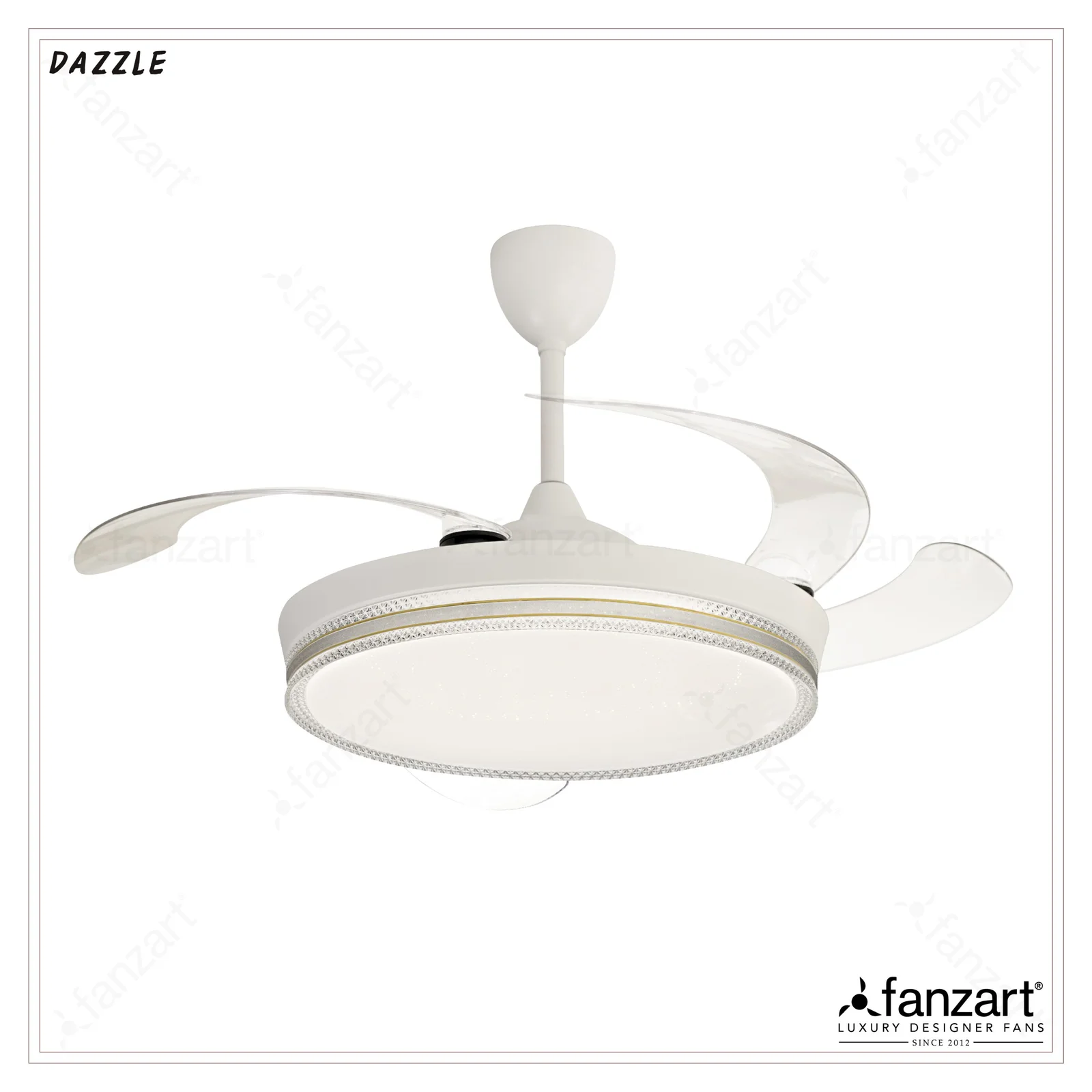 Dazzle – 58″ Modern Fandelier ® 4 X ABS transparent retractable blades with Remote Control, Multi colour LED, Powered by BLDC motor.