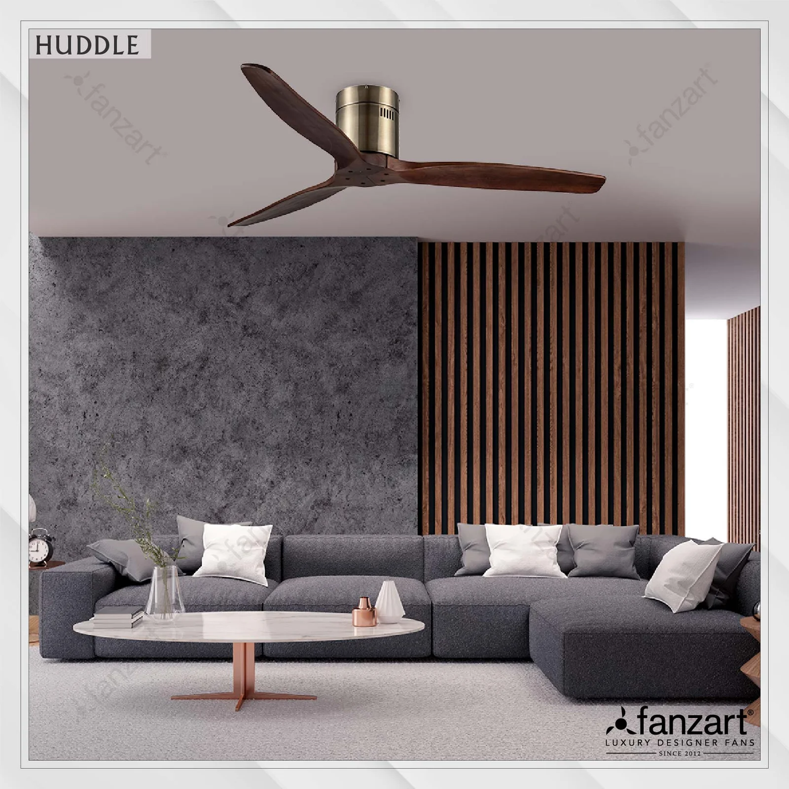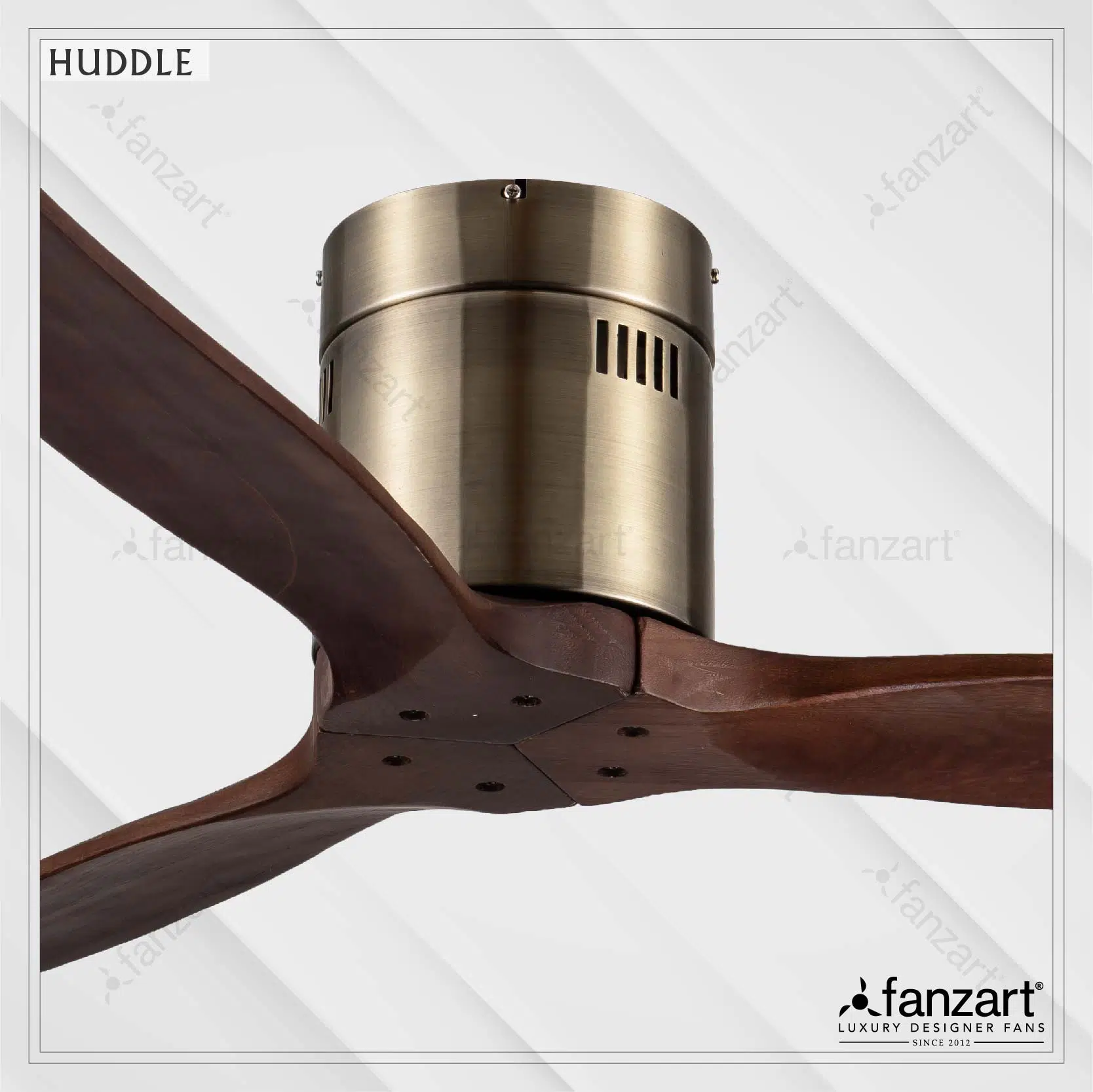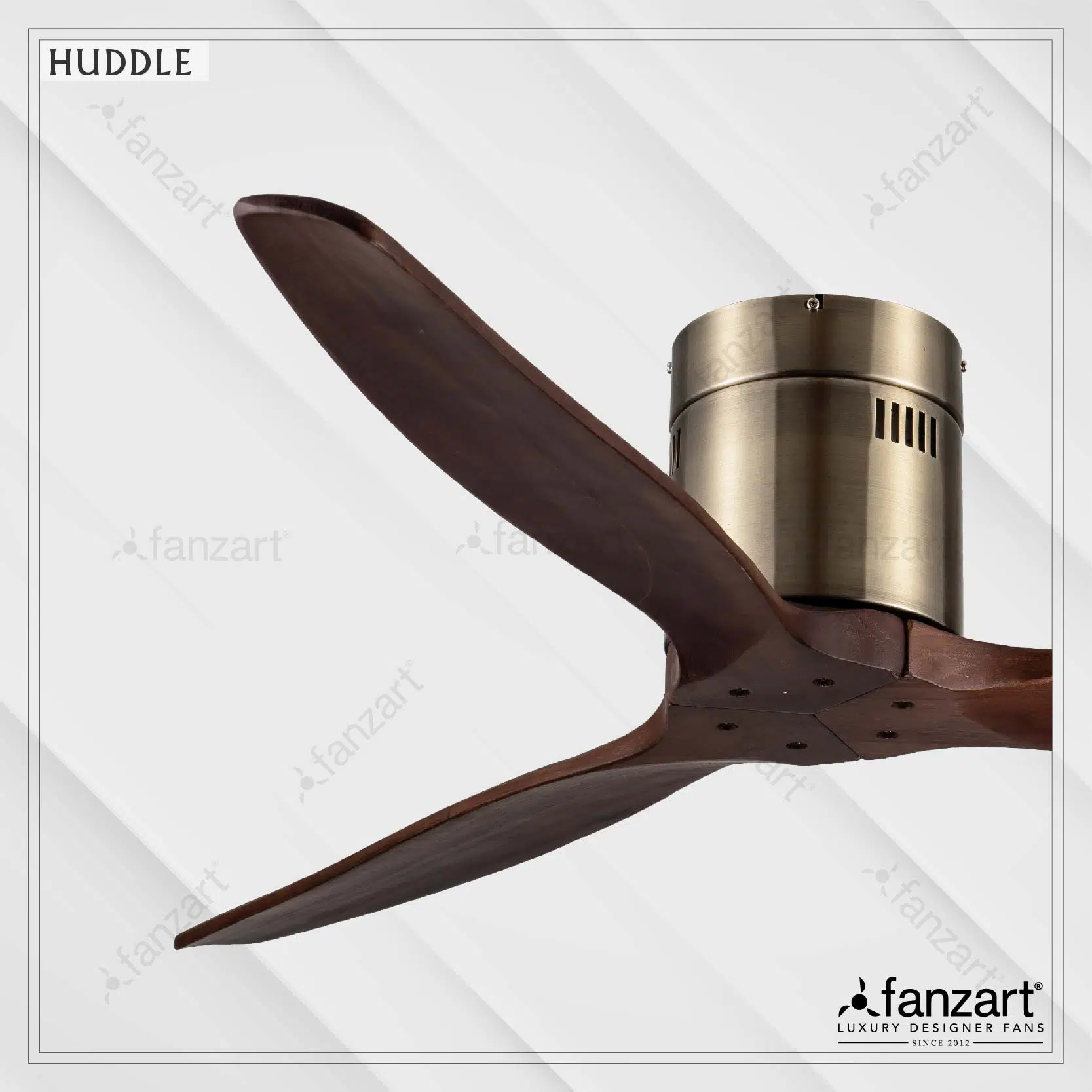 This unique looking contemporary fan is one of FANZART’s first hugger fans. With a distinctive antique brass colour, it comes with wooden blades giving it a crafted look and feel. It paints a picture in the room with it’s very unique hugger feature making it look like it’s hugging the ceiling. Add a touch of this beautiful piece of art on your ceiling.