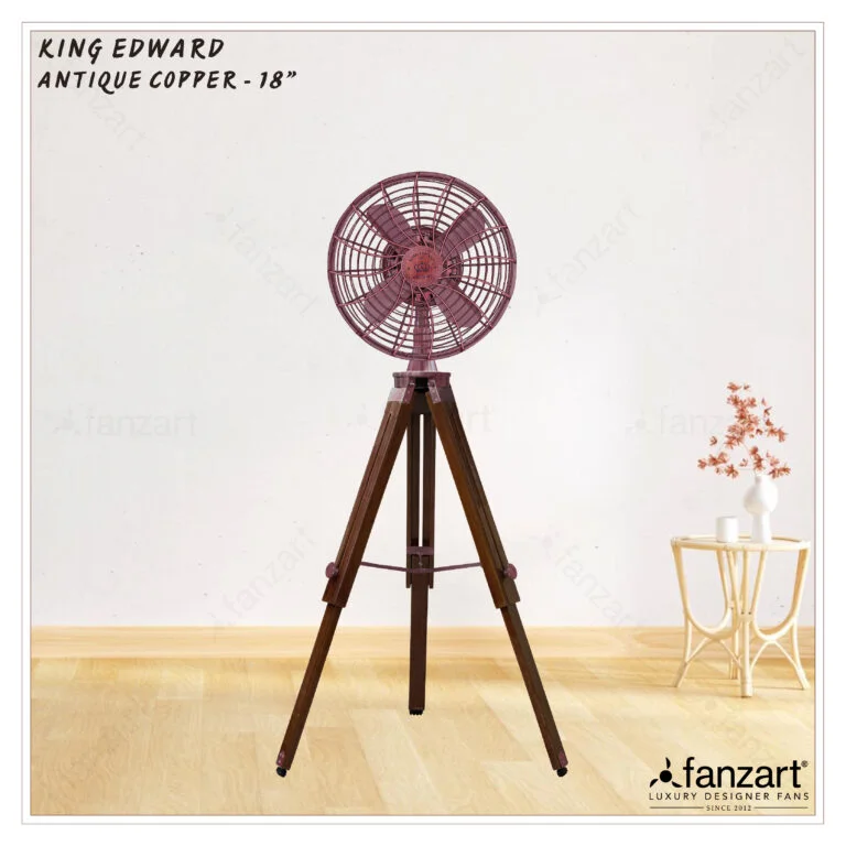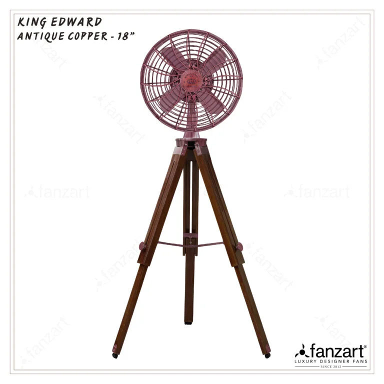 Inspired by the stately grandeur of the British Royal Era, the King Edward fan embodies timeless luxury. A touch of history whispers through its design— a masterpiece from Fanzart’s Royal Tripod Collection. With its gleaming copper finish, handcrafted wooden tripod base, and luxurious whisper-quiet breeze, this fan will transform your space, infusing it with exquisite craftsmanship and a breathtaking blend of artistry and function.