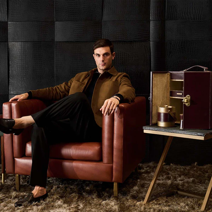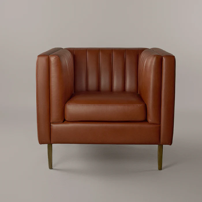The Linea Single-Seater Sofa combines compact elegance with premium craftsmanship. Upholstered in top-grain waxy leather with a quilted backrest, it offers a refined look. Built on a kiln-dried hardwood and engineered plywood frame with antique brass-finished iron legs, this piece is both durable and stylish, perfect for modern living spaces.