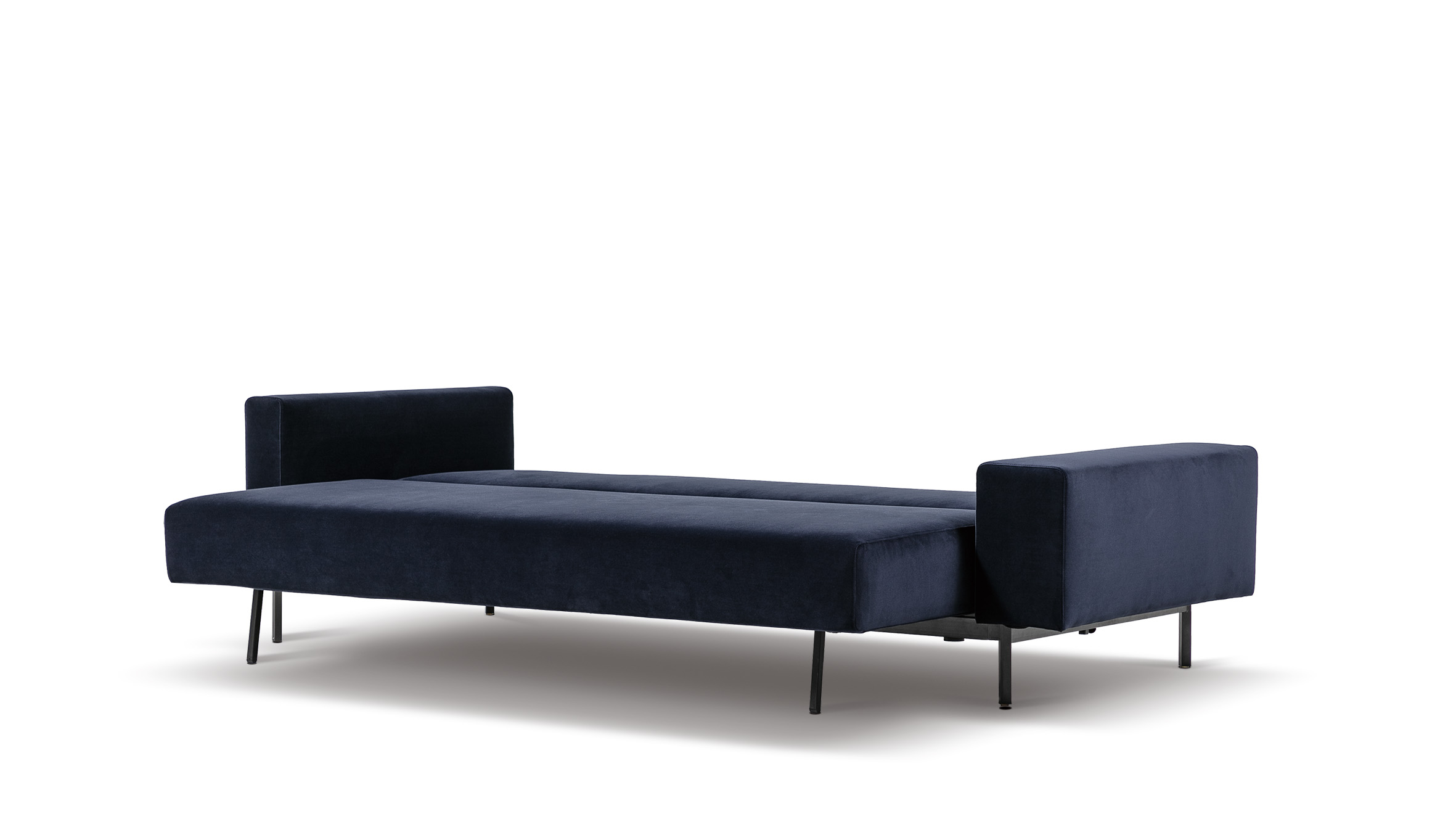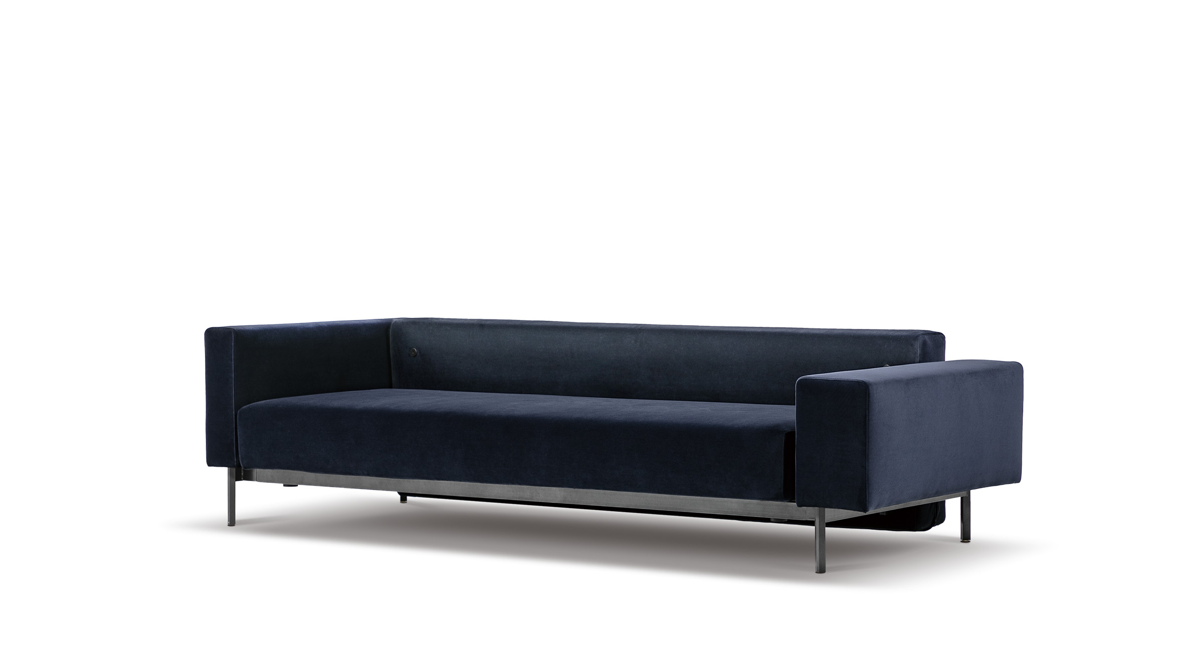 Not all sleeper sofas are created equally, and the Lola Sofa Bed is a testament to that. The clean, tailored lines and minimalist anthracite steel floating base belie the true nature of the Lola Sofa Bed. Swiftly this seemingly simple sofa transforms with a semi-automatic pull out mechanism into a bed for two. Perfect for the unexpected house guest or studio apartment resident, form and function come together to create a truly functional piece of furniture. A steel frame supports a pocket-spring seat topped with high-resilient polyurethane foam with fabric lining. The Lola can be done with low wide or high narrow arms and in the LINEAR-01 or LUXE-04 upholstery.