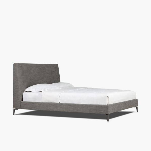 Nothing says “sleep in” like our luxurious, streamlined Luna bed. The elegant headrest is constructed from solid birch and plywood reinforcements. Luna bed’s plywood rails are covered in a polyurethane foam and fabric lining, while the beechwood slat system allows for a touch more control in mattress firmness. Slender darkened steel legs bring a touch of modernity to this crisp design. This low profile piece simply glides into any contemporary bedroom set.