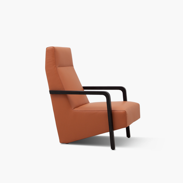 The Vast chair may seem formal and firm, but the chairs reclined back and inclined seat padded with polyurethane foam provides the perfect balance between comfort and support. Bracketed by Grey Oak or Natural Oak solid wood arms, the Vast chair is strikingly modern with its exaggerated backrest and low-slung seat. Available in your choice of fabric or leather.