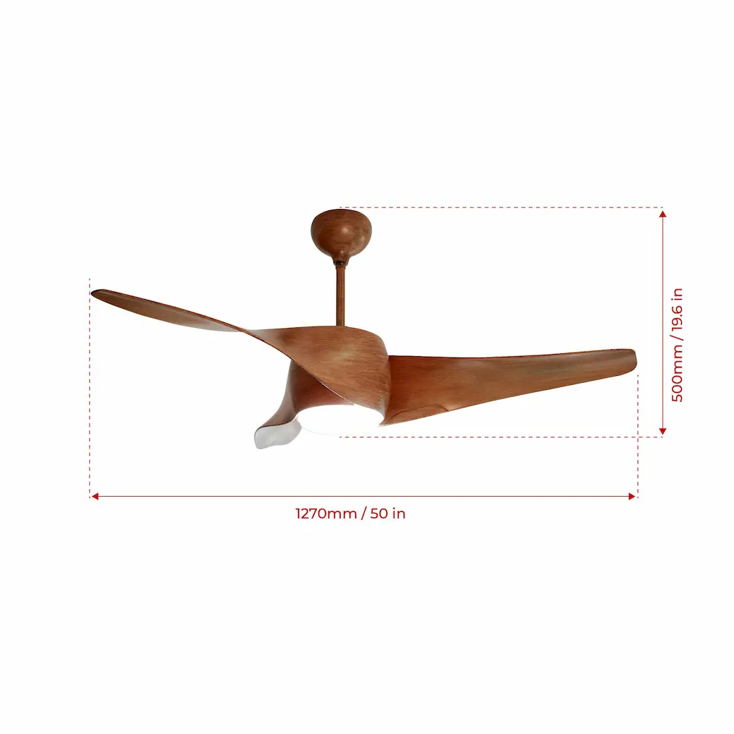 A little wavy, a little woody, and a whole lot beautiful. A truly unique design that draws inspiration from the ocean’s majestic and graceful yet playful wave formations. When the fan is turned on, the designer fan represents a flowing nature and a natural rhythm calming your soul and cooling your body with its powerful breeze. The 50 inch designer ceiling fan is completed with Danish Teak finish that can complement tropical as well as modern vintage decor. The multicolor LED light kit incorporated in the fan can light up your room with warm light, cool light / white light or daylight increasing efficiency. The Wave Brown LED is a soothing addition to your bedrooms, living rooms, study rooms, drawing rooms, and is controlled by the remote in your hand.